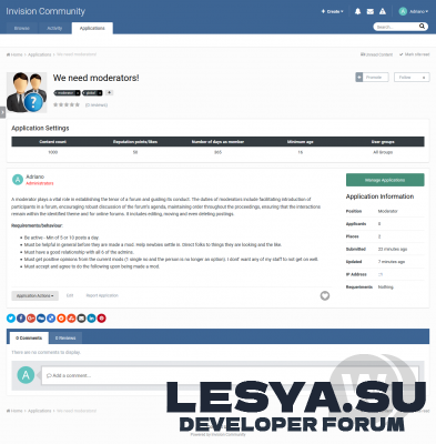 Staff Applications System - приложения для IPS 4.x которое поможет вам организовать поиск сотрудников для вашего форума.