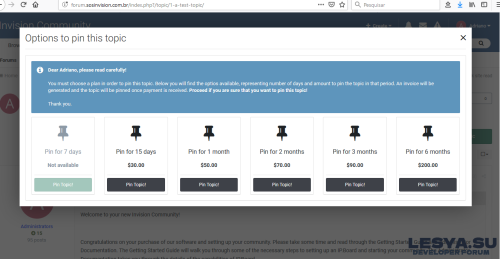Будет создан счет, и тема будет закреплена после получения оплаты автоматически. В то же время, тема не будет доступна для того, чтобы быть закрепленной кем-либо еще. Существует настройка в приложении Commerce, чтобы определить количество дней, через которое срок действия счета истечёт (ACP -> Commerce -> Invoices -> Invoice Settings -> Invoices must be paid within). Вы можете изменить значение по умолчанию (30 дней) на что-то, что соответствует вашим потребностям.