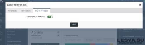 Это приложение поможет администраторам монетизировать свои сайты, позволяя пользователям платить за то, чтобы закрепить наверху списка тем определённые темы на заданный срок. Администратор может разрешить закреплять темы в определенных форумах и для определенных групп пользователей.