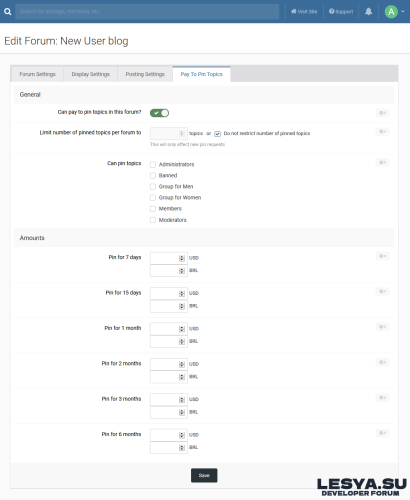 - Выбор групп, которым разрешено платить за закрепление тем.
