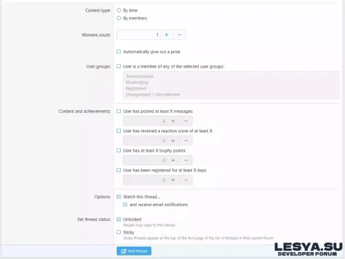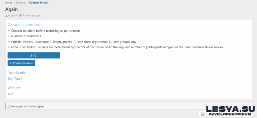 Плагин позволяет создавать розыгрыши между пользователями на форуме.