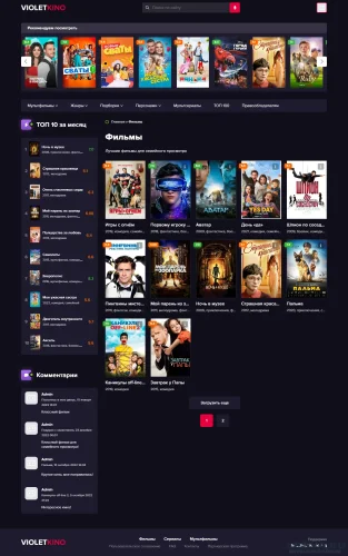 Шаблон "Violet" - это путешествие в эпоху старого модерна и старых кинопорталов. Он приглашает вас насладиться изысканностью и элегантностью прошлого века и создать великолепный кинопортал.