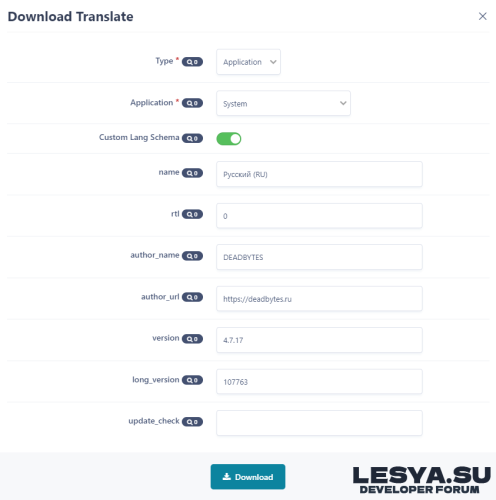 Плагин предназначен для скачивания перевода для отдельных приложений и плагинов с последующей загрузкой.