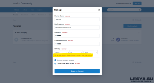 Новые учетные записи будут зарегистрированы только в том случае, если они соответствуют минимальным возрастным требованиям.