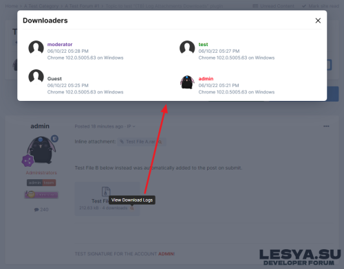 Этот плагин регистрирует каждую загрузку вложений для файлов, загруженных через редактор. и, обзоры, записи в блогах, базы данных страниц, отчеты, объявления, личные сообщения и т. д.