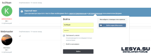Код [hide=1,2,3] [/hide], где 1 - кол-во постов, 2 - репутация, 3 - количество дней на форуме