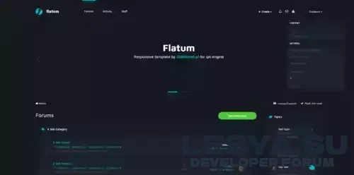 Flatum - это темный стиль для последней версии IPS Community Suite, который имеет очень продвинутые функции настройки шаблона в ACP (фиксированная ширина, изменение отображения подфорума, макет шапки и другое) , что позволяет адаптировать его к каждому требованию. Эта тема полностью адаптивная.