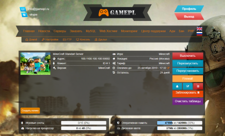 Developer Опубликовано 12 июля, 2024 Поделиться Опубликовано 12 июля, 2024 Примечание: Скрипт работает на системе Debian 10 - 11 / Ubuntu 20.04 22.04 так же может работать, VDS или Выделенный сервер Данная панель для тех, кто не хочет переплачивать за ненужные функции, GamePL Lite предназначена только для личного использования. В данной панели имеется всё необходимок для работы с сервером и собраны самые популярные игры. При покупке панели вы получаете автоустановщик GamePL Lite При обращении всегда поможем с установкой. Возможности GamePL Lite: Редактирование шаблонов из админ панели Возможность создания одиночных статических страниц Система новостей Центр поддержки клиентов FastDL на Apache или Nginx Встроенный редактор конфигов FTP сервер и Online FTP клиент Консоль для серверов Система совладельцев для серверов Поддержка всех игр CS, minecraft и samp Логин и пороль shop@ftpby.ru admin1 Поддержка тем оформления Блокировки клиента, как по профилю так и по ip адресу Мониторинг ваших серверов Форум запуск chmod +x gamepl-lite.sh ; ./gamepl-lite.sh gamepl.zip Поставь LIKE! Если помог)) LinkBoost .RU - Cервис для монетизации трафика Зарабатывай на продаже рекламных ссылок, и баннеров Ссылка на комментарий https://xezzy.ru/topic/33-skript-nastroyki-paneli-gamepl-lite/ Поделиться на другие сайты Поделиться